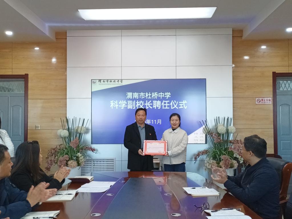 为积极响应省教育厅关于印发《陕西省中小学科学副校长聘任与管理办法》的通知,11月18日上午,渭南市杜桥中学举行科学副校长聘任仪式,我校赵蕊副教授受聘渭南市杜桥中学科学副校长。我校科研处处长黄玉剑,渭南市杜桥中学校长贺启发、党委书记闫文斌、学校班子成员、相关年级负责人共同出席仪式。...