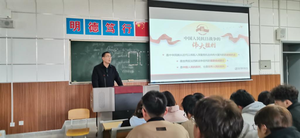 近日,副校长王韦华以“纪念抗战胜利,坚定民族信念”为主题,为机电工程学院师生讲授形势与政策课,带领师生重温民族浴血奋战的壮阔史诗,感悟伟大抗战精神的时代价值。王韦华以时间为轴,从“铭记历史,正义必胜”切入,结合九一八事变、卢沟桥事变等关键节点史料,系统梳理了1931年至1945年间中...