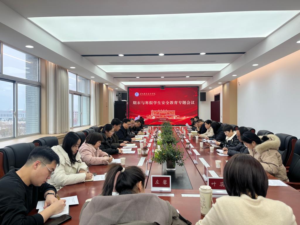 1月20日,我校在行政楼五楼会议室召开2026年期末与寒假学生安全教育专题会议。党委委员、副校长赵永刚,学生处处长赵国辉,副处长陈旭铖,学生管理科科长常振华,各二级学院主管学生工作党总支书记(副书记)及学生科科长(副科长)参加。会议由学生处副处长王强主持。常振华组织与会人员集中学习《...