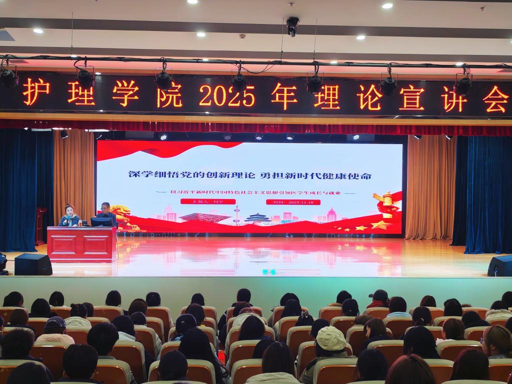 为切实提高青年学生思想政治素养与理论水平,11月18日下午,护理学院在图书馆报告厅开展2025年理论宣讲活动。活动由招生就业科科长何宇主讲,团总支副书记郭瑞主持。何宇以《深学细悟党的创新理论 勇担新时代健康使命》为题,为在场师生带来一场内容翔实、富有启发的理论辅导。报告中,他系统阐述了...