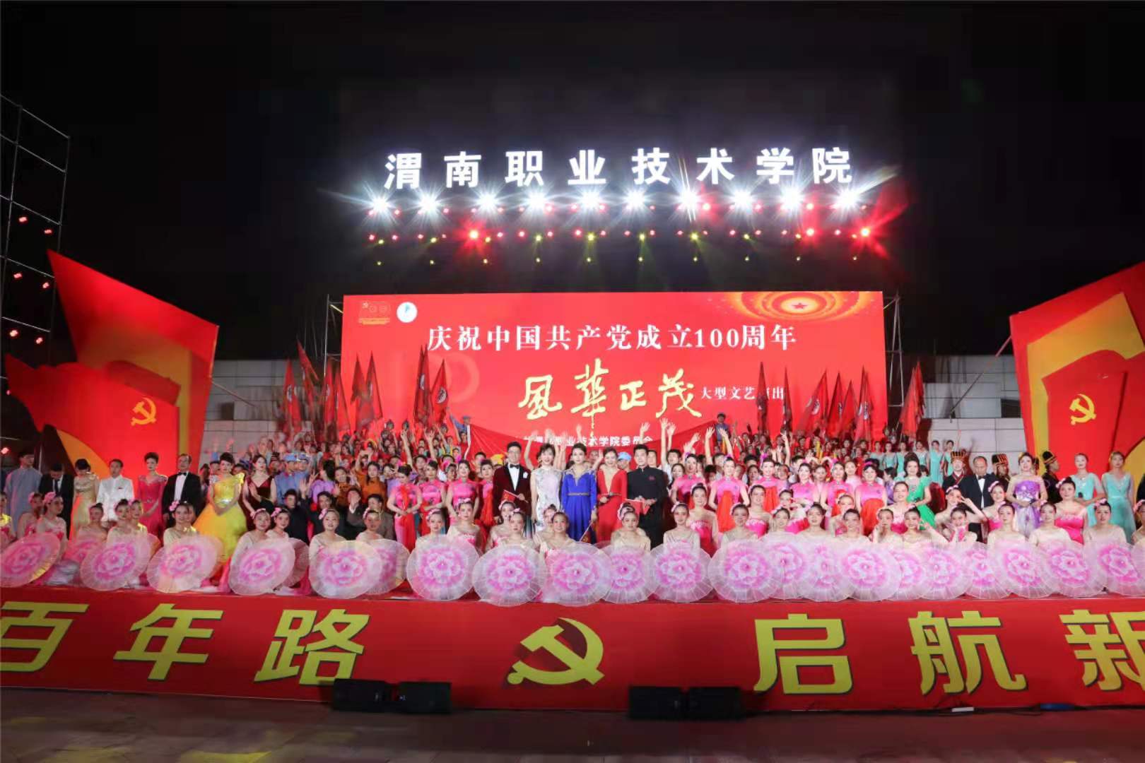 百年恰是风华正茂,百年初心历久弥坚。7月1日晚,渭南职业技术学院庆祝中国共产党成立100周年“风华正茂”文艺演出在高新校区图书馆南广场隆重举行。市级相关领导、有关部局、高新区管委会及兄弟院校等嘉宾,学校领导班子成员、在校全体师生欢聚一堂,共同庆祝伟大的中国共产党百年华诞。
