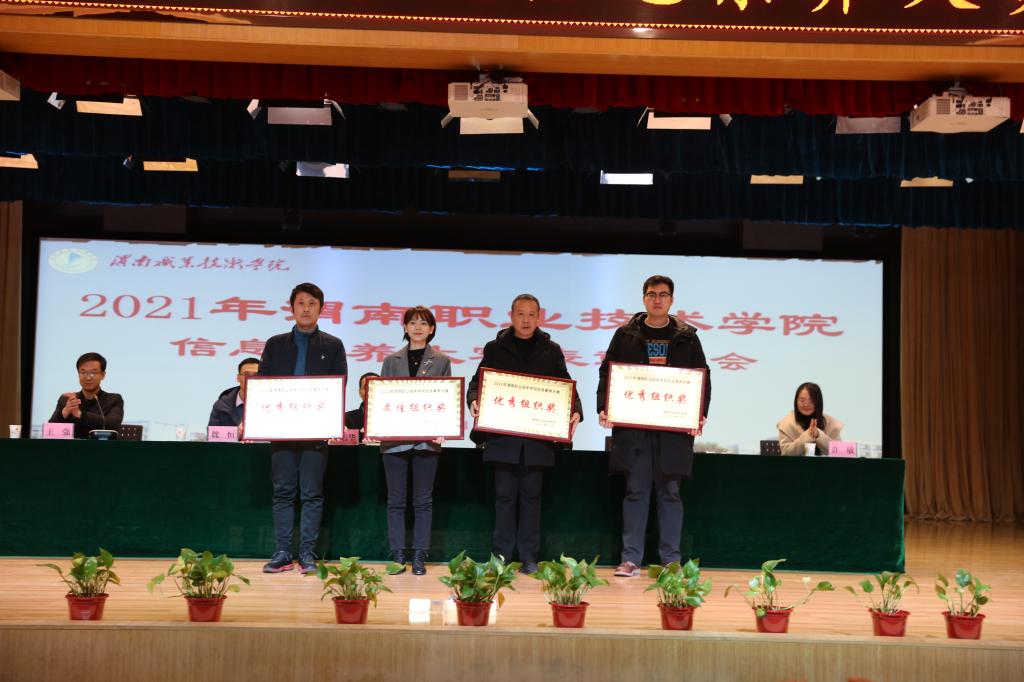 首先,由学生处处长罗峰同志宣读《关于公布2021年陕西省高职高专院校信息素养大赛获奖结果的通知》,教务处处长魏恒宣读《关于公布2021年渭南职业技术学院信息素养大赛获奖名单的通知》。随后,为获奖学生、教师及集体颁发了证书和奖品。