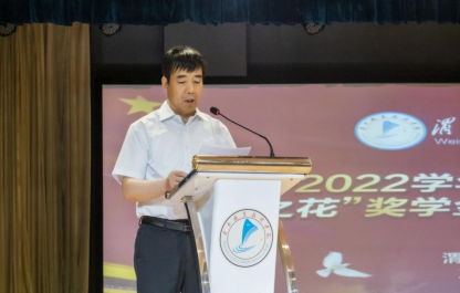 王录军宣读了《关于表彰2021-2022学年“绚丽之花”奖学金获奖学生的决定》,共有1118名同学获得奖学金,学校领导为获奖学生代表颁发了奖牌和荣誉证书。