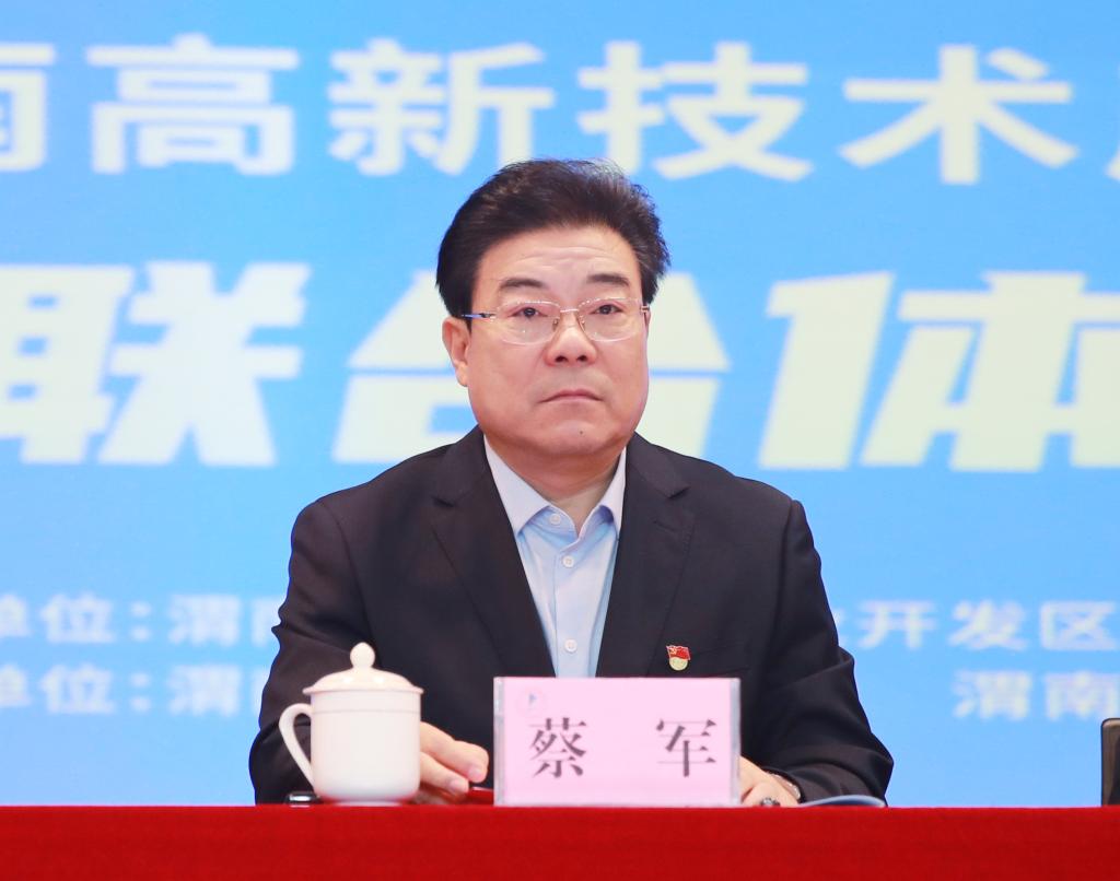 蔡军代表高新区管委会致辞,表示渭南高新区将立足发展所需、未来所向、高新所能,积极搭建“政行企校园”多元合作平台,强化政策供给、要素保障,把产教联合体打造成为渭南样板、陕西标杆、全国典范。