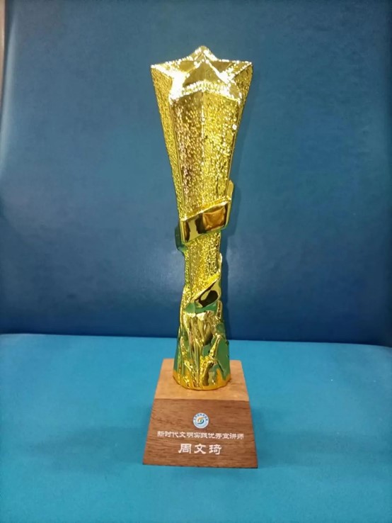 12月22日,陕西省委文明办在宝鸡市举行了陕西省文明实践“十百千万”创评项目发布活动。我院教师周文琦被授予陕西省“新时代文明实践优秀宣讲师”称号,现场颁发了荣誉奖杯。