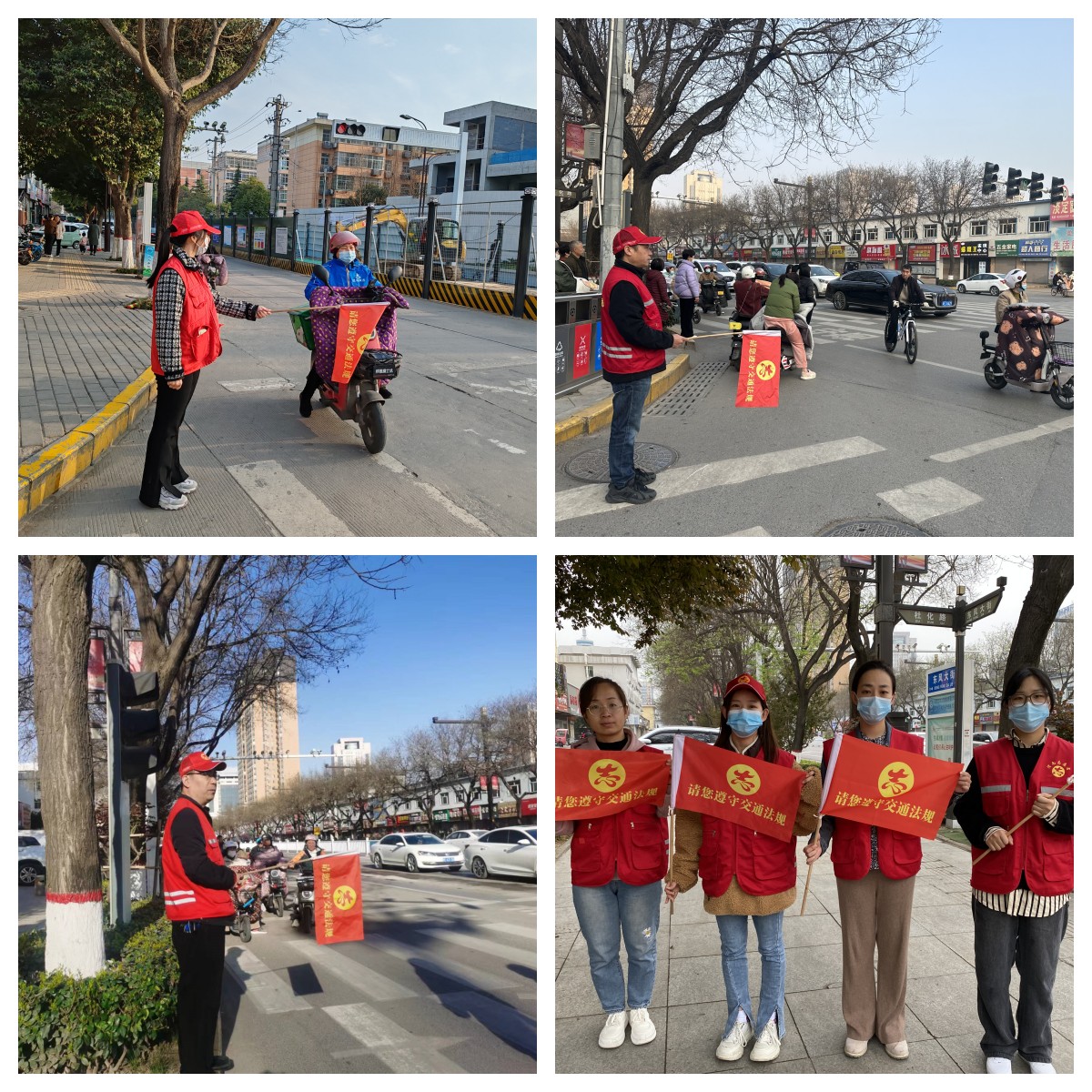 ——化身交通劝导员,“规范”和“劝导”两不误。志愿者们经过执勤交警认真培训,更好地了解掌握交通安全常识、交通安全法律法规等相关知识,收旗、展旗动作也无不展示着标准。“您好,请您骑行电动车时一定佩戴安全头盔”一句温馨的提示不仅宣传交通安全出行常识,更是传递出渭职院人的文明素养。他们按时走上街头,在包联十字路口对有行人闯红灯、不走斑马线、骑电动车不戴头盔等行为进行劝导;引导机动车辆、非机动车辆有序停放;劝走城市的不文明,从源头减少城市环境问题。教书育人我们学为人师,站岗执勤我们行为世范,志愿者老师们用行动诠释了文明的内涵,使市民交通出行的法治意识、安全意识、文明意识得到有效增强,为营造安全、有序、文明、畅通的道路交通环境和创建全国文明城市贡献渭职力量。