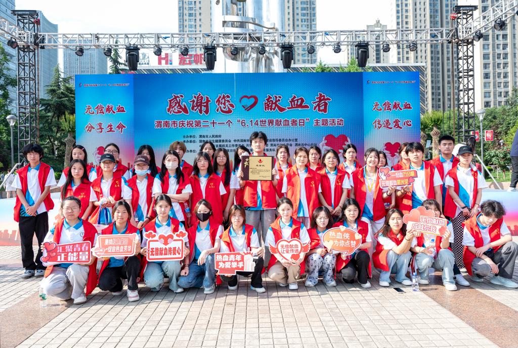 6月13日上午,我院学生处处长罗峰在渭南市中心广场参加第21个“世界献血者日”庆祝活动。五高管理中心40余名志愿者代表参加此项活动。