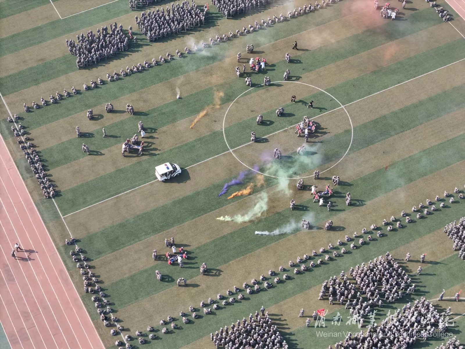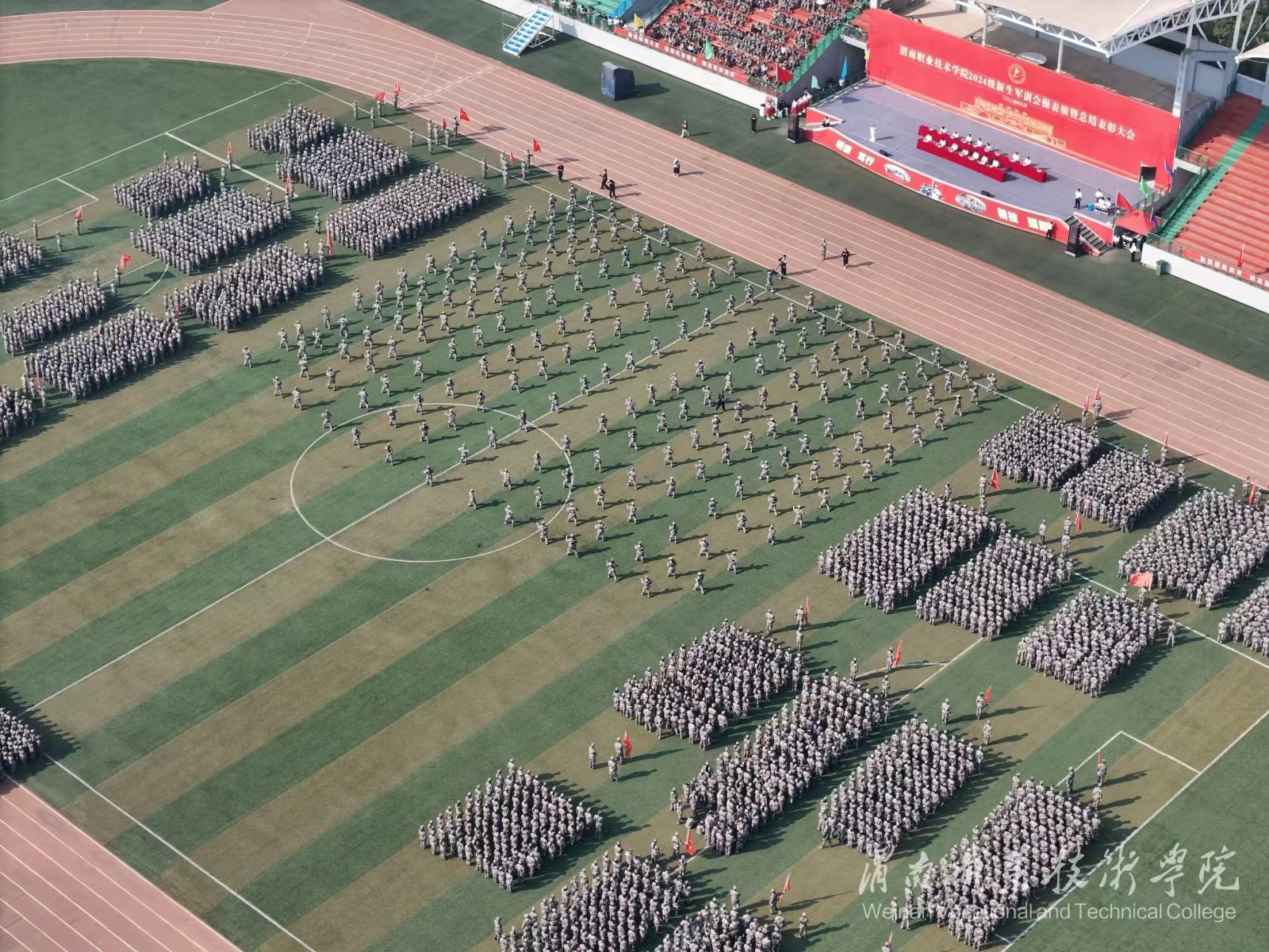 英姿戎装铸军魂,锐志昂扬启新程。9月24日上午,我院在高新校区田径运动场举行2024级军训会操表演暨总结表彰大会。党委书记陈峰,党委副书记、院长靳华锋,党委副书记党少平、王录军,党委委员、副院长毛文生,党委委员、总会计师吴运胜,党委委员、副院长赵永刚;全体教官、各二级学院负责人;2024级辅导员、班主任及全体参训学生近4500人参会。大会由赵永刚主持。