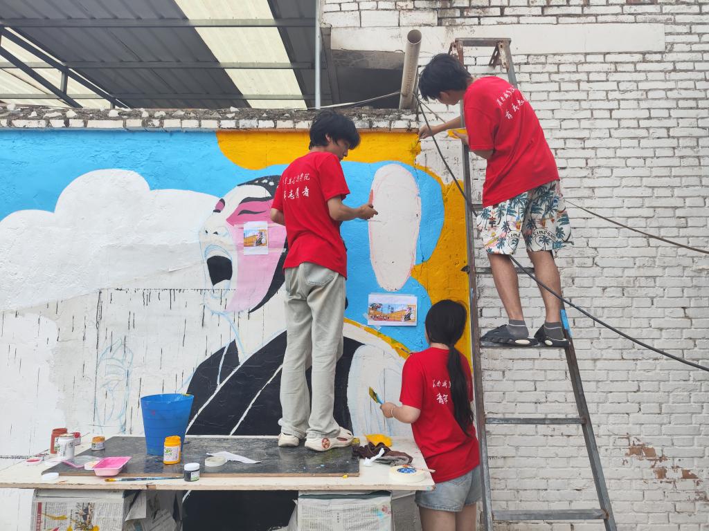聚焦乡村美育振兴,以墙绘艺术赋能枣乡文化传承。师范学院“南黄彩韵 枣乡绘梦”实践团赴大荔县南黄村,开展以墙绘艺术为主题的乡村美化行动。实践团成员们结合专业所学,充分考虑当地枣乡文化特色和村民审美需求,精心设计墙绘方案,为南黄村的乡村振兴注入了鲜活的青春色彩和艺术温度,是“美育服务社会”的生动实践。
