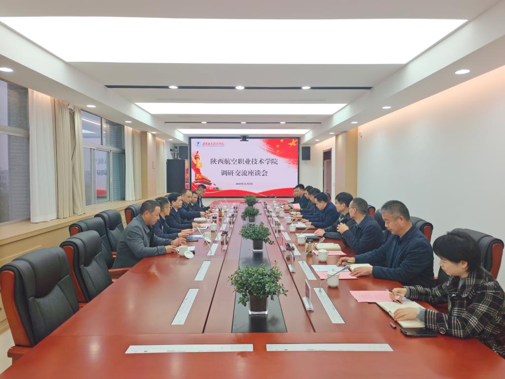11月5日下午,陕西航空职业技术学院党委书记李军、副院长卢强一行6人莅临我校调研交流。学校党委书记陈峰主持座谈会,校长靳华锋,党委副书记姜小卫,副校长王韦华、赵永刚出席,学校相关部门负责人参加调研座谈。