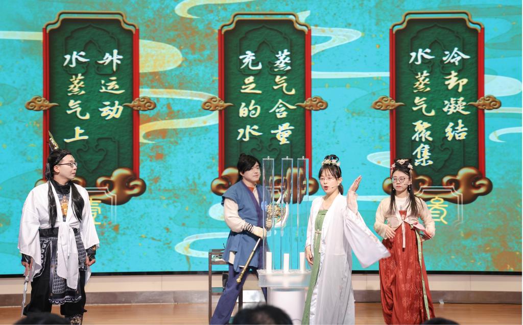 本次大赛以“矢志创新发展,建设科技强国”为主题,赛事严格遵循“复赛、半决赛、总决赛”三阶段选拔机制,吸引了全省高校、科研院所、科技型企业等单位的众多科普工作者与科学传播爱好者参与竞技。我校报送的作品《宝莲渡旱记》以经典神话《宝莲灯》为故事背景,巧妙将沉香救母的叙事与降雨原理、人工降雨技术科普相结合,通过情节演绎再现“久旱无雨”的困境,以实验演示直观呈现水汽凝结、云层形成的自然降雨机制,进而通过模拟干冰催化降雨实验,生动阐释人工降雨的科学原理与应用场景,让抽象的气象知识变得通俗易懂、趣味盎然。