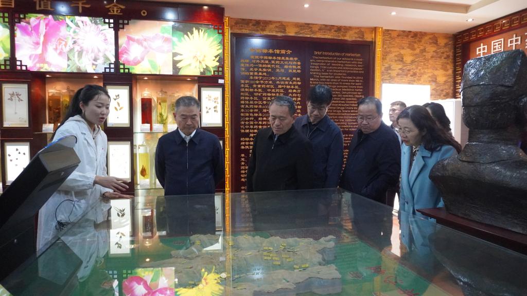 李兴旺一行实地考察了学校中药标本馆、实验实训中心、学生餐厅、校史馆,听取靳华锋关于学校发展、专业建设、人才培养、产教融合及学生食堂管理等方面的工作汇报。