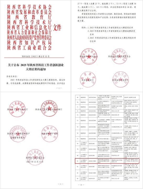 近日,陕西省科协等9家省级部门联合公布了2025年陕西省科技工作者创新创业大赛结果,我校赵蕊教师团队的《智巡先锋——边坡安全智能监测预警系统革新者》项目在全省科技型企业、科研机构、高校院所中突出重围,斩获三等奖。
