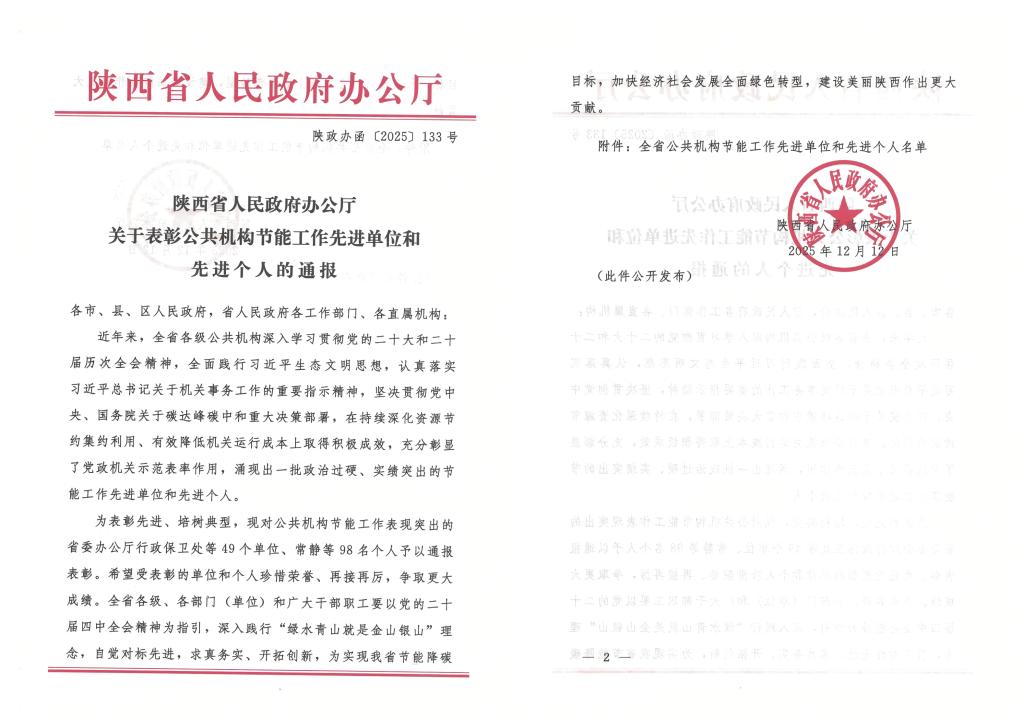近期,陕西省人民政府办公厅印发了《关于表彰公共机构节能工作先进单位和先进个人的通报》,我校后勤服务中心张昆仑荣获“全省公共机构节能工作先进个人”荣誉称号。