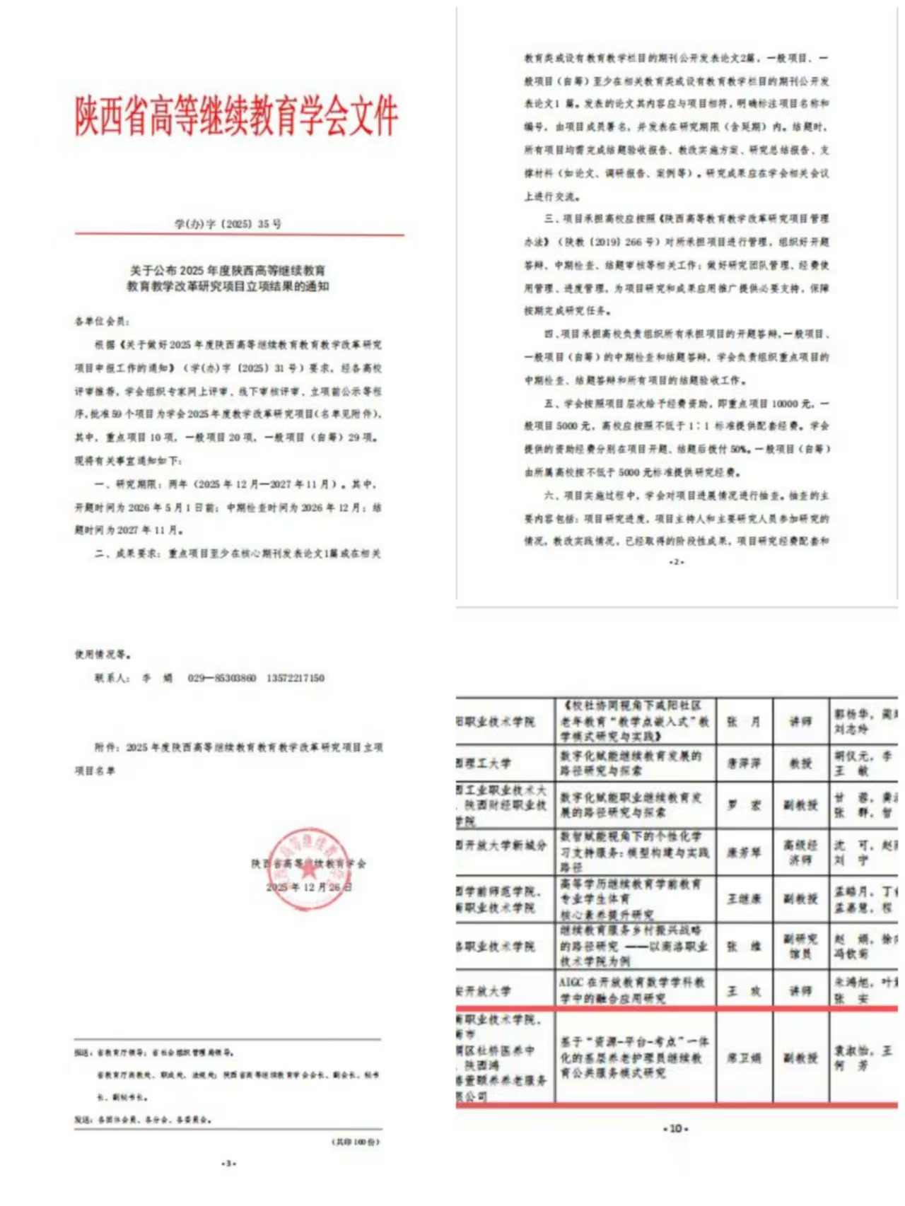 此次省级教改项目立项,是我校继续教育科研创新工作的重要突破,为学校新一轮“双高”建设注入了新的动力。下一步,继续教育学院将强化项目全过程管理与服务保障,支持项目团队聚焦关键研究问题、培育高质量研究成果。同时,学校将以此次立项为契机,进一步整合校内科研力量,深化科教融合、产教融合,力争产出更多标志性成果,为区域经济社会发展和陕西职业教育高质量发展贡献力量。(撰稿:继续教育学院 翟超 审核:黄玉剑)