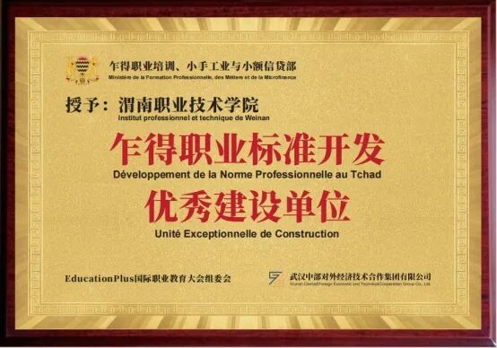 开发建设的中医学专业NTA3级《中医养生与护理3级》职业教育标准已被乍得等国家职业教育委员会审核认证,签发认证函,获得“乍得职业标准开发优秀建设单位”称号。