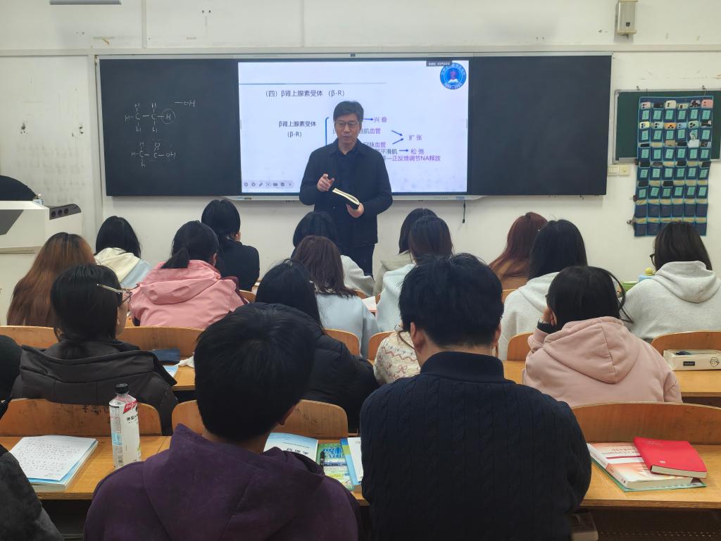 3月10日下午,校长靳华锋走进临床医学定向班2501班随堂听取吴虎平老师讲授的《药理学》课程,并与师生亲切交流。教务处处长李晓乾、学生处处长赵国辉、护理学院副院长任秋爱一同听课。