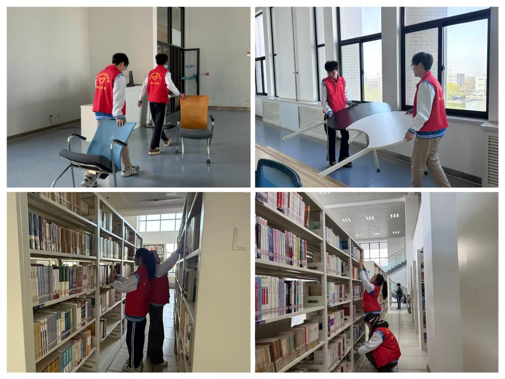 书香沁人心,路远温暖行。志愿者们身着红色马甲,用抹布清理书架、地面和桌面的灰尘,对书架上的图书进行分类整理、排序上架,并对图书馆公共阅读区域进行了全面清扫,为师生营造了更加整洁有序的学习环境。