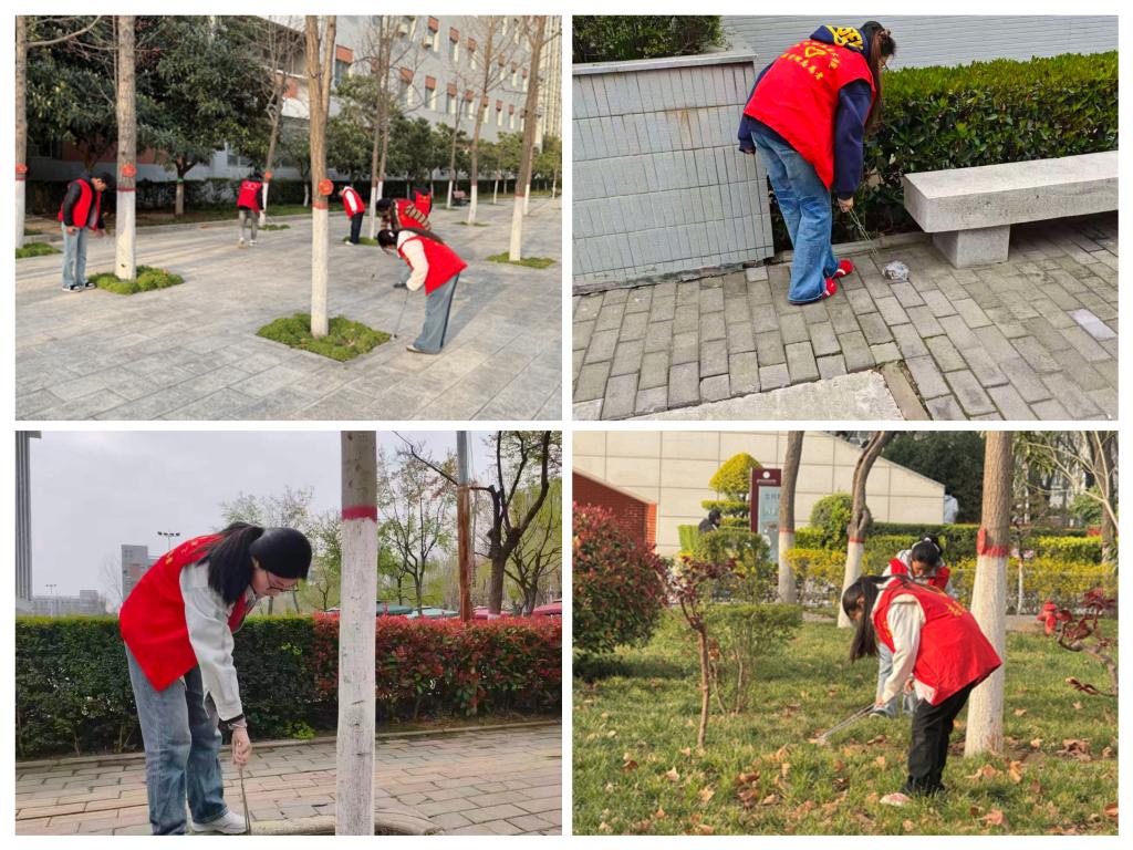 绿化校园,共筑绿色梦想。渭职“小红衫”志愿者们手持笤帚、铁锹等清洁工具,在全校开展卫生整治活动,充分发扬不怕苦、不怕累、不怕脏的优良作风,对落叶、烟头、纸屑等垃圾进行仔细清扫并分类处理,齐心协力打造美好的校园环境,提升全体学生“人人爱护环境、共建洁净校园”意识。