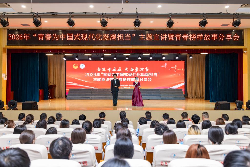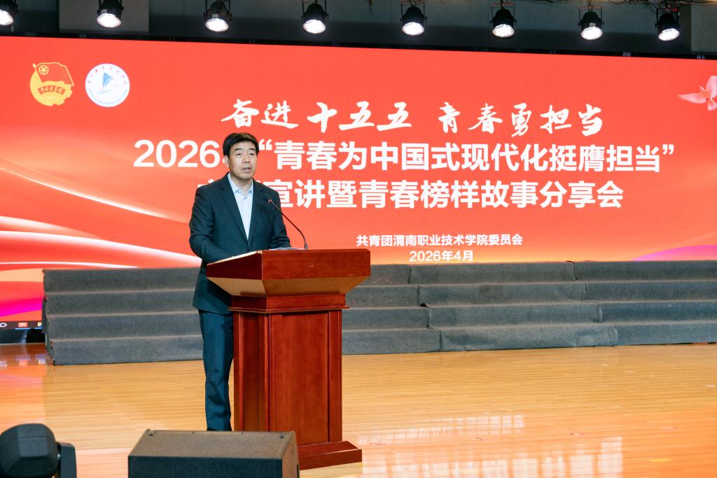 4月28日,我校2026年“青春为中国式现代化挺膺担当”主题宣讲暨青春榜样故事分享会在图书馆报告厅举行。校长靳华锋、党委副书记王录军、总会计师吴运胜出席,各二级学院党总支书记、副书记,相关处室负责人及入团积极分子、青马学员代表参加。