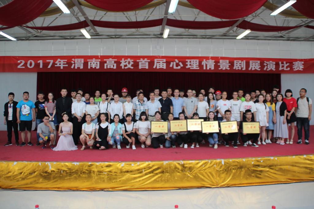 6月8日,由渭南高校(渭南师范学院、陕西铁路工程职业技术学院、渭南职业技术学院)联合举办的首届心理剧展演比赛在我校大学生活动中心隆重举行,学工部部长罗峰,渭南师范学院院学工部副部长陈景西和我校二级学院辅导站教师参加,本次展演比赛由国家二级心理咨询师潘凤、赵渭婷、梁崇科、赵智军、孙战民担任评委,来自三个学校的7个推荐剧目参与展演。