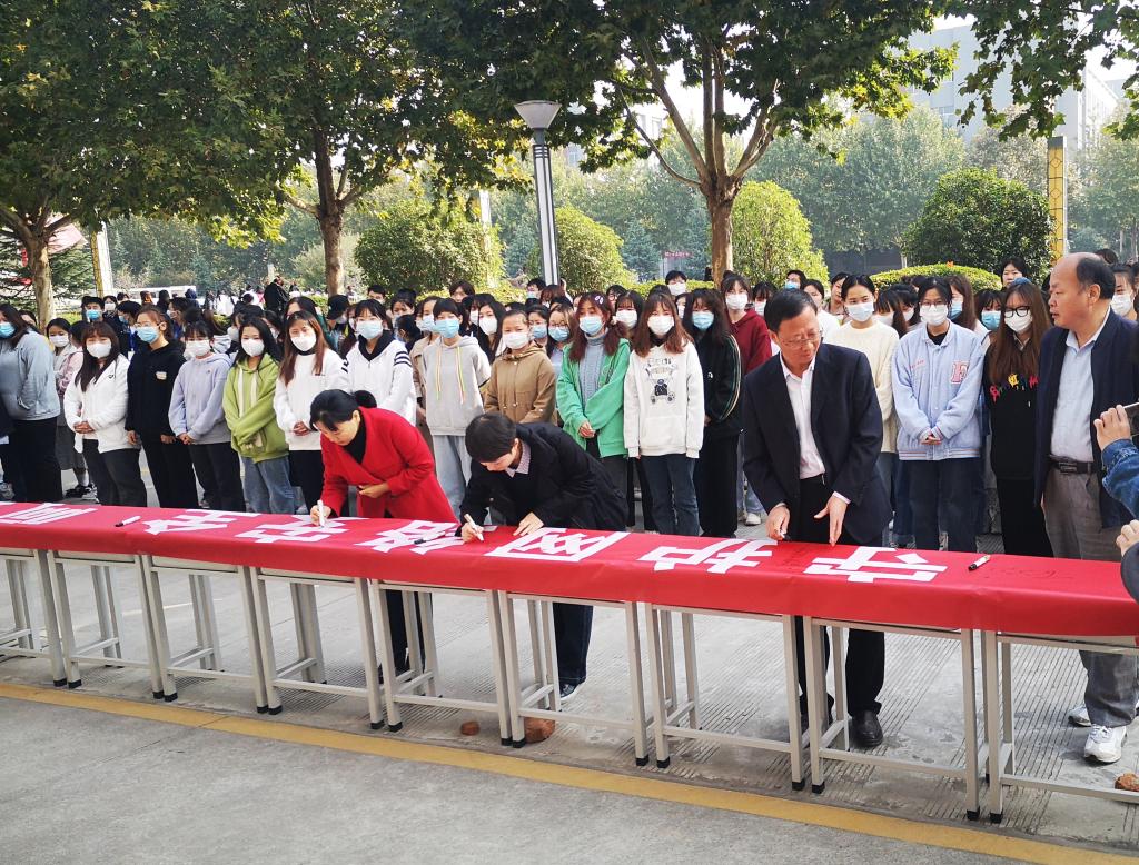 本次活动的主要内容为:一是召开“守护网络安全,你我同行”主题班会,会上同学们深入学习网络安全相关知识及《全国青少年网络公约》,让学生观看网络教育宣传片、网络安全视频案例,通过鲜活的事例来帮助学生正确认识到网络安全的重要性,并展开讨论,让学生积极发言,使学生加深网络安全自我保护意识,自觉遵守网络法规、文明上网。二是利用自习时间组织学生登录“中国大学生在线”公众号,参与“守护青春网络有你”知识竞答。通过线上问答普及网络安全知识,提高大学生安全使用网络的能力。三是开展“守护网络安全”千人签字活动。活动由学生科负责人叶蕊主持,师范学院党总支书记卢百龙、院长郭楚伟、副书记黄翠萍、办公室主任李新萍、辅导员代表出席本次活动,与千余名学生一起在“守护网络安全,呵护精神家园”的横幅上签字。学生党支部负责人左馨发表讲话,她希望同学们合理使用网络帮助学习和生活,在互联网的海洋中畅游的同时,多多学习大学生网络安全知识,从自身做起,带动身边的同学,共同努力维护渭南职业技术学院的网络安全,创造一个良好的校园网络环境。