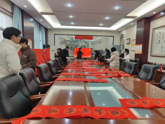 1月14日,护理学院教学党支部在医训楼第一会议室开展“灵蛇献瑞迎新春 挥毫春联送暖情”迎春送福活动,为即将到来的春节增添浓厚的喜庆氛围。此次活动吸引了众多教职工参与,现场热闹非凡。
