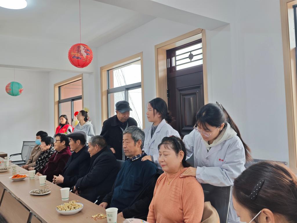 活动伊始,民生社区党总支书记屈红梅致辞。护理学院师生们为老人献上了一场精彩纷呈的文艺演出。歌曲《世界赠予我》、诗朗诵《赞美夕阳、感恩亲情》、舞蹈《向快乐出发》等节目轮番上演,赢得了现场阵阵掌声。同学们还现场教学“养老手指操”,帮助老人活动筋骨、促进健康,简单易学的动作深受欢迎。护理学院专业教师郭宇森、马军峰坐镇义诊区,为老人提供健康咨询与用药指导。按摩区的志愿者则耐心为老人进行肩颈放松,缓解疲劳。护理学院团总支副书记郭瑞、辅导员代表韩李鑫、杨璞典全程参与活动组织与志愿服务,确保活动有序开展。渭南市疾控中心的工作人员也为老人带来了秋冬季流感预防与体重管理的健康知识宣传,并贴心地为每位老人送上小礼品。活动最后,全体志愿者与社区老人合影留念,记录下这温暖难忘的瞬间。