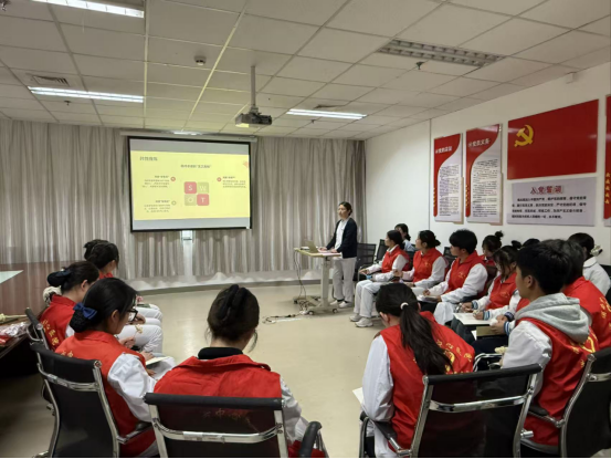 11月5日,双方合作聚焦智慧健康养老领域新兴的安宁疗护岗位需求,在渭南市中心医院老年病科开展“生命关怀・守护最后一公里”志愿者关怀活动。活动围绕岗位核心能力展开专项培训与实践。渭南市中心医院老年病科护士屈英琦讲解中医适宜技术(艾灸、穴位按摩)在安宁疗护中的应用,契合智慧养老“传统照护+技术辅助”的发展趋势。刘婕结合临床案例开展生命教育,强化学生对安宁疗护岗位“心理支持、家属沟通”等职业素养的认知。