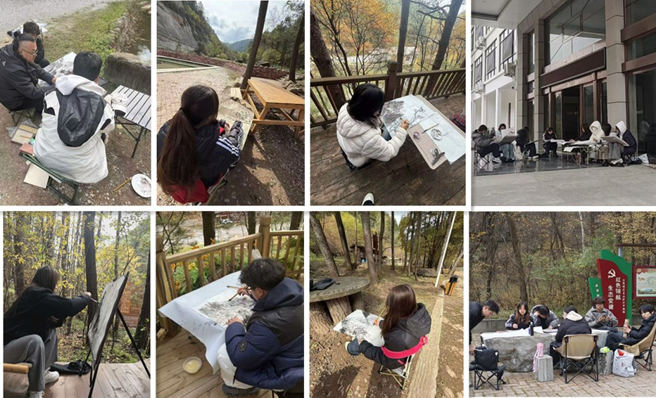 黄陵国家森林公园以其独特的自然景观和深厚的文化底蕴,为师生们提供了丰富的创作素材。在书画艺术教研室邢健、蒲维辉、董明瑛、朱晓永4名教师的带领下,学生们深入公园腹地,在千年古柏林、飞瀑流泉、奇峰怪石间寻找创作灵感。森林公园四季分明的自然景观,特别是秋季层林尽染的壮美景象,是学习中国山水画的绝佳课堂。