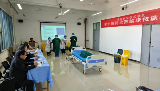 在医学技术赛道,赛事以车祸致腹部损伤的真实病例为模拟对象,设置了无菌手术衣穿脱、腹腔穿刺术等实操考核项目。参赛选手在竞赛过程中展现出从容镇定的心态,不仅操作娴熟规范,语言表达清晰连贯,临床思维的逻辑层次也十分鲜明。评委张王孝老师在点评中着重指出,无菌技术是临床操作的核心准则,至关重要,他鼓励选手在后续的实践中持续精进操作能力。护理学院党总支书记王医平强调,加强叩诊练习,夯实诊疗基础技能;巩固理论知识,以扎实的理论提升实操水平,同时要进一步强化临床思维的逻辑性。