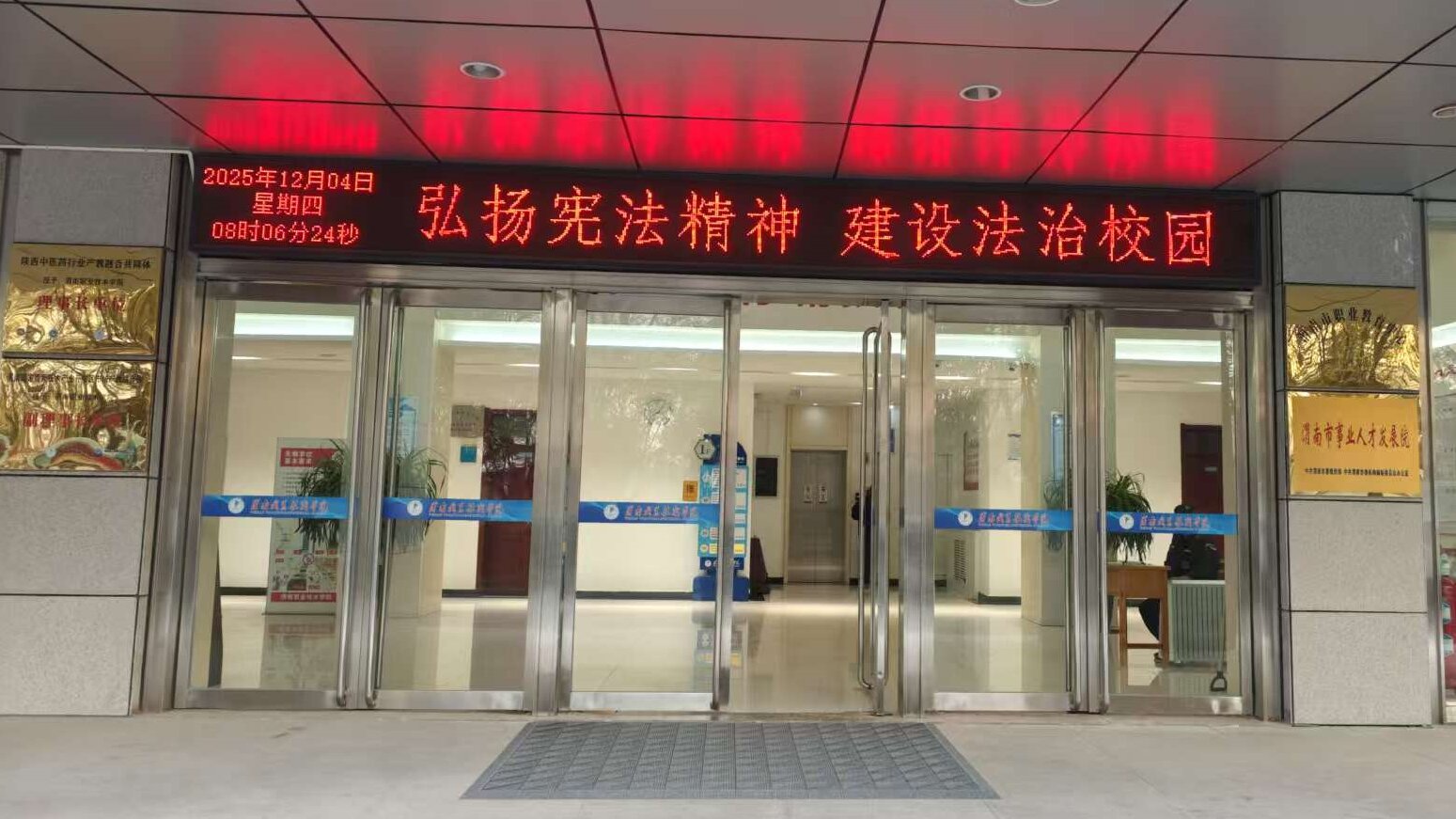 本次活动创新实施“宪法进教室、进公寓、进社团“三进”模式,推动宪法教育多场景融入。“宪法进教室”中,学生处副处长王强、学生管理科科长常振华、辅导员余水旸组织学生代表,在图书馆二楼会议室集中观看了教育部全国青少年普法网“宪法晨读”直播,同步参与升旗仪式,并庄严诵读宪法部分条款。在肃穆的氛围中,师生共同接受了一次生动的宪法教育,强化了对宪法权威的认同。“宪法进公寓”中,机电工程学院学生代表在学生公寓7号楼文化活动区,通过组织集体诵读,推动宪法学习从课堂延伸至生活社区,使法治教育更加贴近学生日常,促进宪法精神入脑入心。“宪法进社团”中,由学校普法协会牵头,社团成员在校园内开展诵读活动。大家在诵读中深化对宪法条文的理解,在交流中自觉成为宪法的学习者与传播者,有效营造了校园法治文化氛围。此外,我校充分利用校园宣传阵地,利用公众号、H5、展板和电子屏幕等形式营造浓厚的法治教育氛围,让宪法理念深入人心。