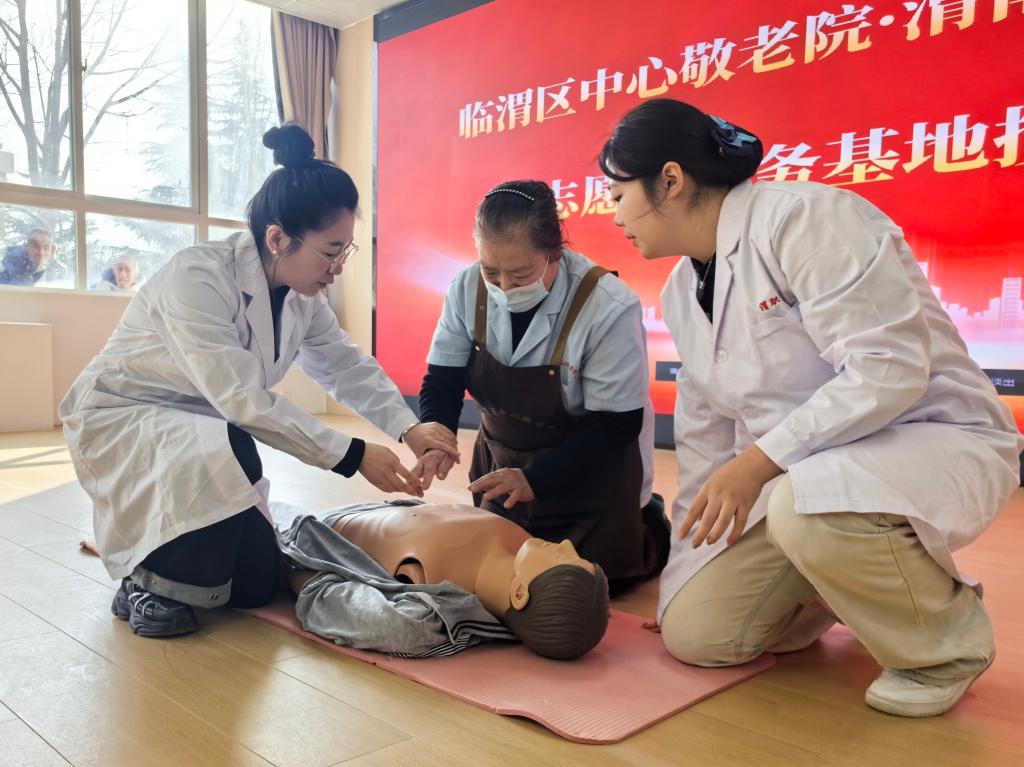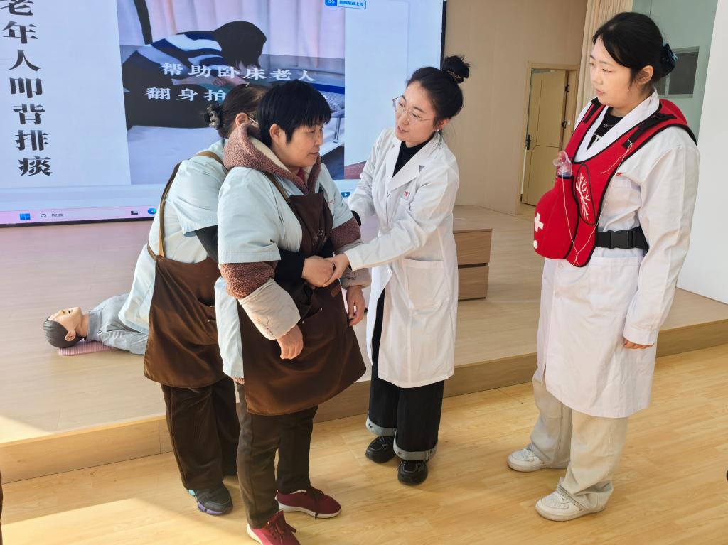 会前,护理学院教师白聪聪、学生代表郭楚嫣围绕心肺复苏(CPR)、老年人噎食急救(海姆立克法)、正确拍背排痰等关键技术对敬老院职工开展急救技能培训。参训人员逐一进行实操演练,逐步掌握动作规范与处置要领。