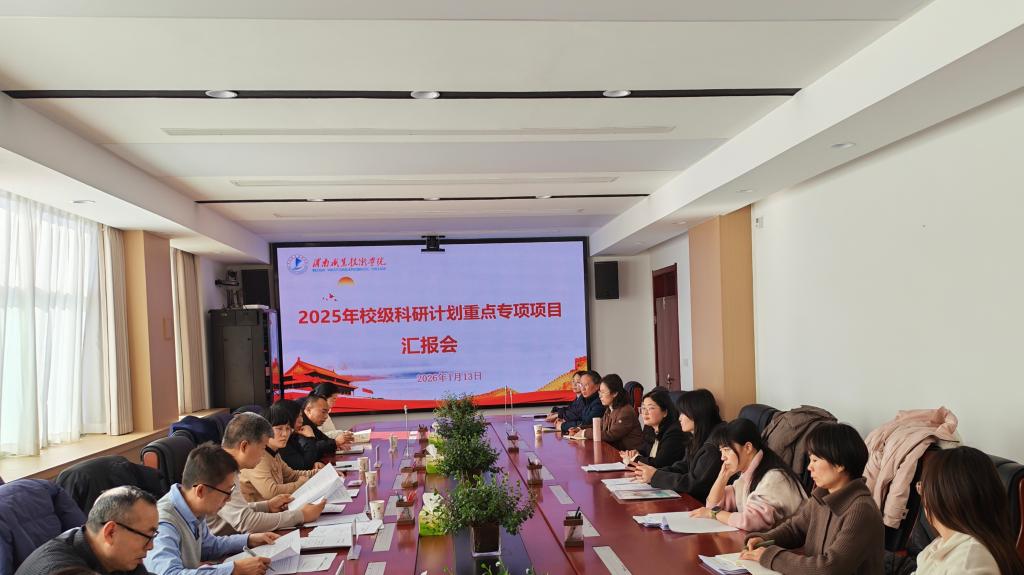 1月13日下午,2025年度校级科研计划项目开题汇报会在行政楼5楼会议室顺利举行。校内外5位评审专家、各项目组负责人及团队成员参加会议。会议由科研处处长蒋宝主持。
