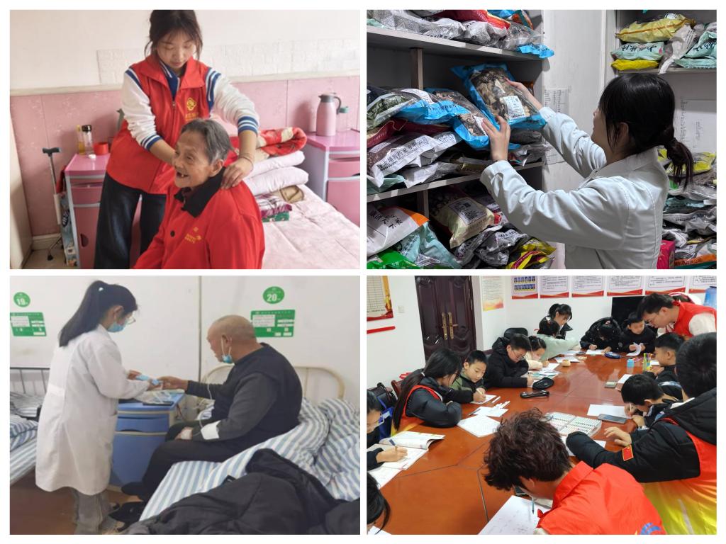 发挥专业特长,实践增长才干。同学们将所学知识与社会需求紧密结合,在专业实践中锤炼本领。医学生深入医院见习,跟随带教老师参与查房、抢救,在乡村宣教中为老人测量血压血糖,感悟基层医疗的温度与责任;师范生走进儿童服务站,设计互动课程、开展课业辅导,在陪伴中提升教育实践能力;护理学子将健康知识融入志愿服务,向家人邻里普及冬季养生、慢病护理常识,让专业素养在服务中闪光。