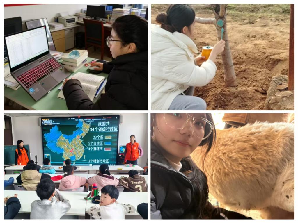助力乡村振兴,青春建功田野。同学们走进田间地头、产业基地,在躬耕劳作中感知乡村发展脉搏。有的协助村委会整理档案、录入数据,为基层治理注入青春力量;有的为果树涂刷防护药剂、守护生长,为乡村振兴增添青春底色;有的聚焦家乡特色产业,拍摄柿饼晾晒、奶山羊养殖,用新媒体推广“一红一白”等乡土好物,以青春智慧为美丽乡村建设添砖加瓦。