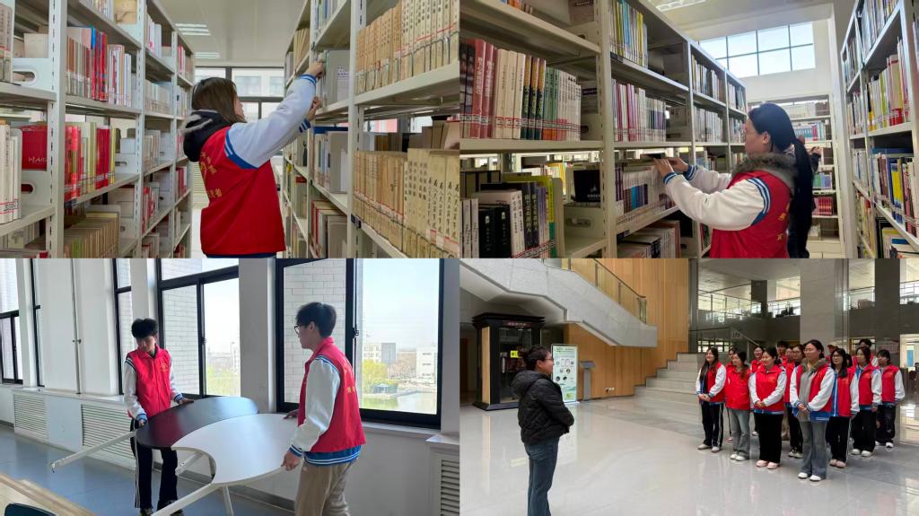 团委牵头,联合图书馆组织校青年志愿者服务队“小红衫”们,在图书馆开展图书整理与清扫志愿服务活动。20余名志愿者们分工协作,对书架上的图书进行分类整理、排序上架,并对公共阅读区域进行了全面清扫,为师生营造了更加整洁有序的学习环境。