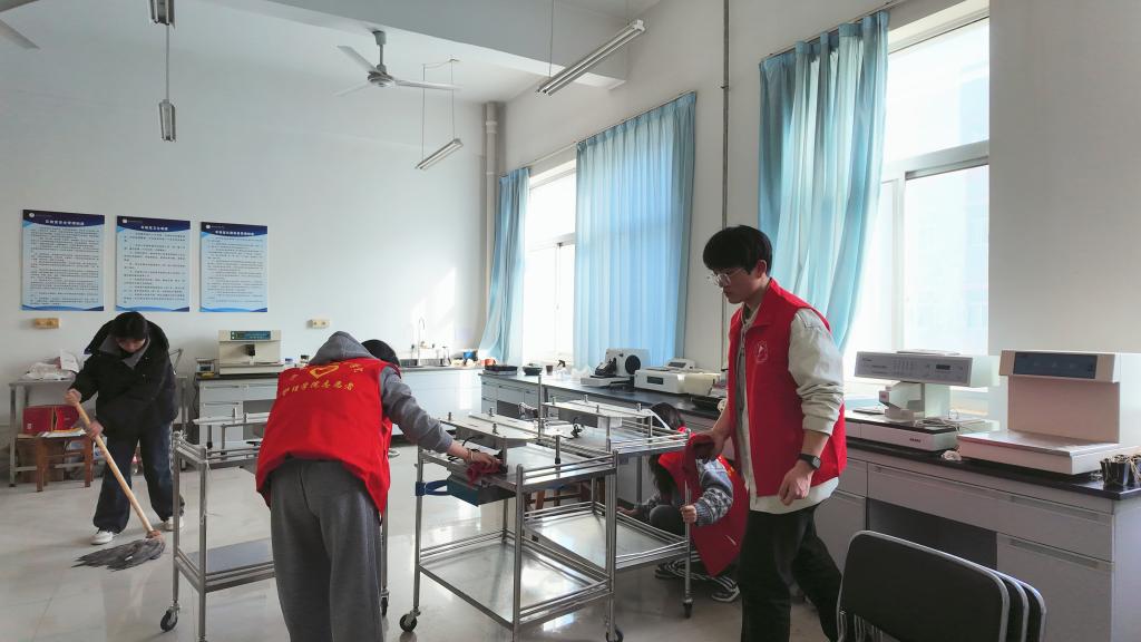 志愿清扫实训室,劳动实践启新程。护理学院团总支青年志愿者服务队的50余名学生志愿者积极投身实训室清洁工作,以实际行动服务师生、美化校园。志愿者们分工协作,对护理、助产、临床等专业共用的实训楼层、各专业实训室进行了全面细致的清理。大家仔细擦拭实训设备,清扫卫生死角,整理教学器材。经过一下午的劳动,各专业实训室环境焕然一新,为同学们更好地开展实训课程提供了有力保障。