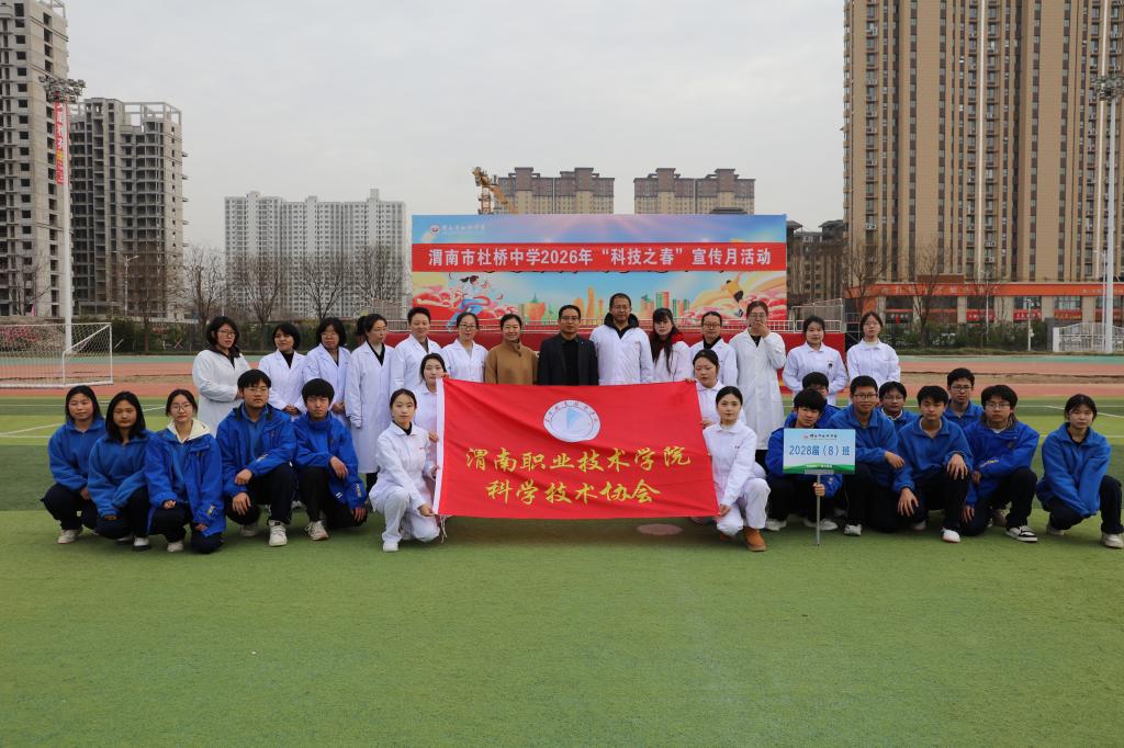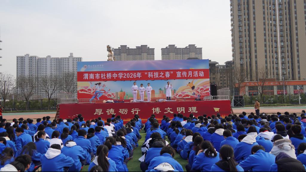 3月19日,我校科普讲师团走进渭南市杜桥中学,开展急救知识科普讲解与实践体验活动。渭南市杜桥中学高一年级一千余名学生参加活动。