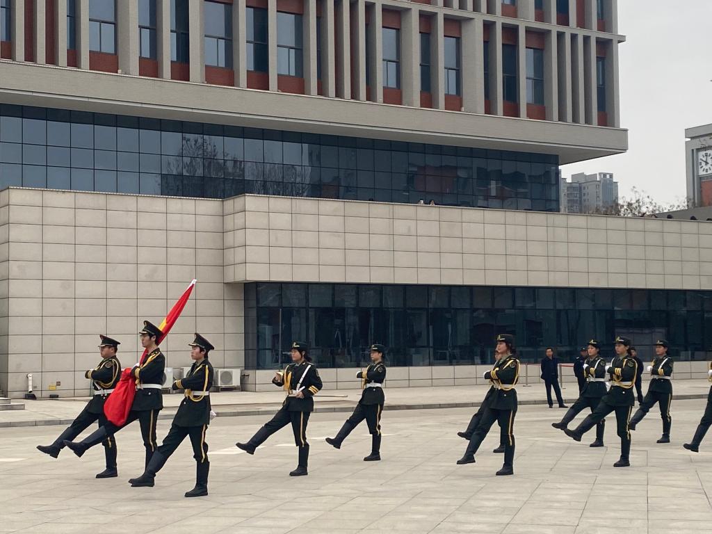 3月23日,我校在高新校区南广场举行春季学期第三次升旗仪式。学生处副处长王强、学生管理科科长常振华,护理学院党总支书记王医平、办公室主任王剑,护理学院2025级全体学生及辅导员参加。党总支副书记周梦花主持。
