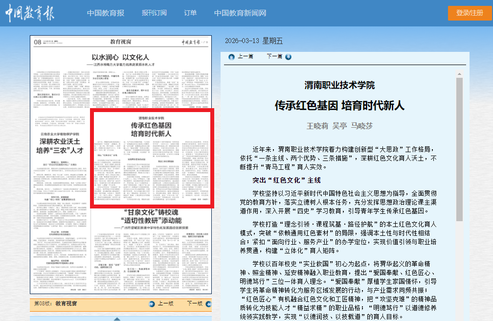 学校牵头成立渭南市中高职思政课一体化建设工作中心,通过系统挖掘、梳理整合本地悠久的革命传统与丰厚的红色资源,建立区域职业教育课程思政建设体系,推动红色文化与职业教育深度融合。
